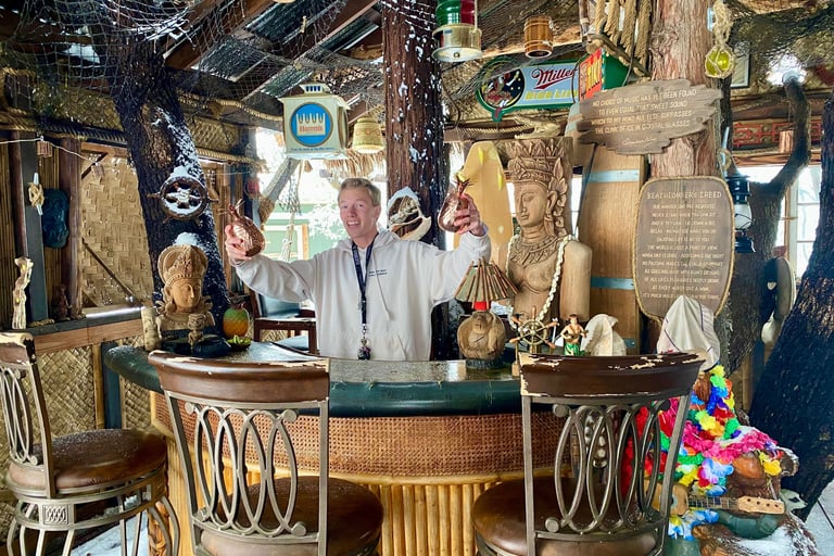 We arrived to the thick blanket of snow already covering the town and the surrounding mountains. Our cabin was a delight—Tiki-inspired décor, warm wood tones, and a mini turbo fireplace that made curling up with a hot drink irresistible. It was cozy, quirky, and perfectly suited for a winter retreat.