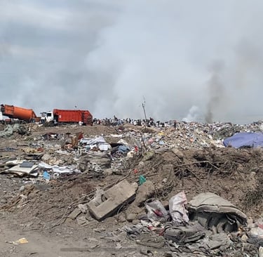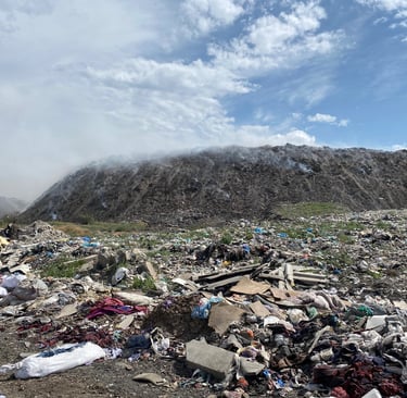 Just outside Bishkek, we visited a massive landfill—one that had grown for decades due to mismanagement, lack of regulation, and limited waste infrastructure. The site, often referred to as the “polygon” or “trash hill,” lies near the village of Altyn‑Kazyk. We were told to wear masks as we approached, warned that the fumes could make us sick. It wasn’t just a dump—it was a symbol of a larger environmental and public-health crisis.