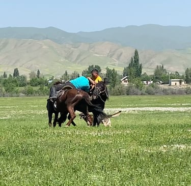 One of the most unforgettable experiences in Kyrgyzstan was watching Kok-Boru, a traditional horseback game that feels entirely foreign to anything I’ve played—or even imagined—growing up. At first glance, the game is intense, chaotic, and loud: mounted riders gallop across the field, vying for control of a goat carcass (with its hooves removed), tossing it between one another, and attempting to score by depositing it in a goal. But behind the initial shock is a centuries-old tradition rooted in skill, strategy, and communal identity.
