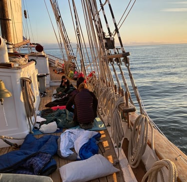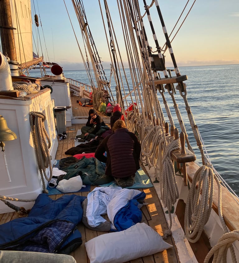 The weather was kind to us, and by nightfall we rolled out our sleeping bags on deck, laying under a sky that felt impossibly vast. Stars stretched from horizon to horizon, and the gentle rocking of the ship became a lullaby. Sleeping on the deck of a brigantine, with nothing but the sound of the ocean and the whisper of the wind, was both peaceful and exhilarating—a perfect reminder of why adventures like this exist: to push boundaries, embrace the unknown, and connect with something larger than ourselves.