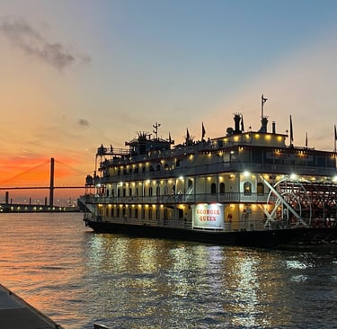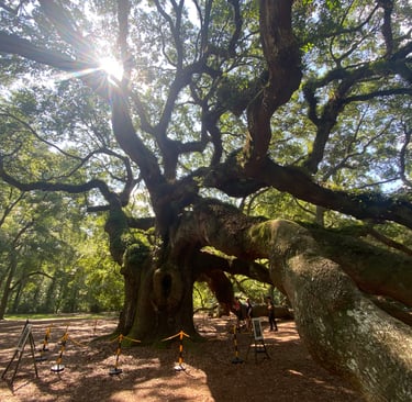 Savannah felt like stepping into a postcard. On the way, we pulled off the highway for some stargazing—the kind where you remember you’re tiny in a massive universe. In town, we explored the Cathedral Basilica of St. John the Baptist, strolled the historic district, wandered Forsyth Park, watched the steamboat at Riverfront Plaza, and visited Angel Oak Park to see a tree so massive it could have its own zip code. On Wadmalaw Island, we stopped at a winery and, naturally, swung on the swings because adulthood is overrated.