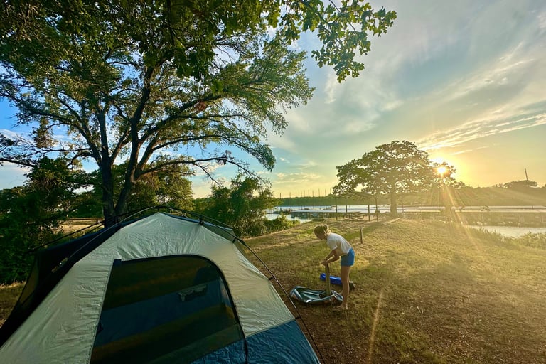 Our first stop was Oklahoma’s Sequoyah State Park. Nestled around a shimmering lake, it was the perfect stretch-your-legs-and-breathe-in-the-fresh-air moment. Canoes, ducks, and a quiet serenity set the tone before the chaos of Texas.